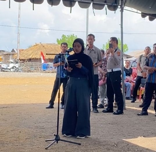 Salah satu perwakilan Tim Patriot Transmigrasi di wilayah Kabupaten Timor Tengah Utara, yang diwakili oleh Maulidya dari Tim C Institut Pertanian Bogor (IPB), memaparkan hasil observasi mereka selama tiga bulan terakhir. Tim ini dijadwalkan akan terus berada di lokasi hingga awal Desember 2025 mendatang.