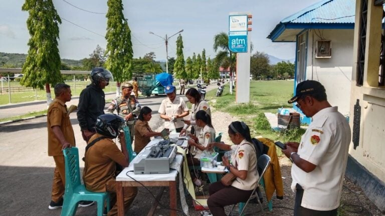 Kefamenanu, iNewsTTU.id — Unit Pelaksana Teknis Daerah (UPTD) Pendapatan Kabupaten Timor Tengah Utara (TTU) bersama Pemerintah Kabupaten TTU menggelar razia pajak kendaraan bermotor khusus bagi Aparatur Sipil Negara (ASN). Razia dilakukan sesaat setelah Upacara Kesadaran di pintu masuk Kantor Bupati TTU.