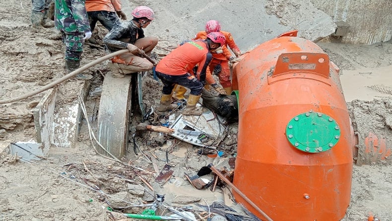Tim gabungan terus bekerja keras di lokasi kejadian untuk menemukan korban terakhir yang masih tertimbun material longsor.