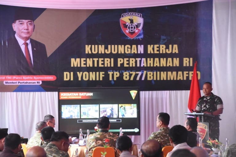 Dalam agenda kunjungan tersebut, Menteri Pertahanan RI menerima paparan langsung dari Danyon TP 877/Biinmaffo terkait kondisi satuan, pelaksanaan tugas pokok, pembinaan personel, serta kesiapan prajurit dalam menghadapi berbagai tantangan tugas ke depan.