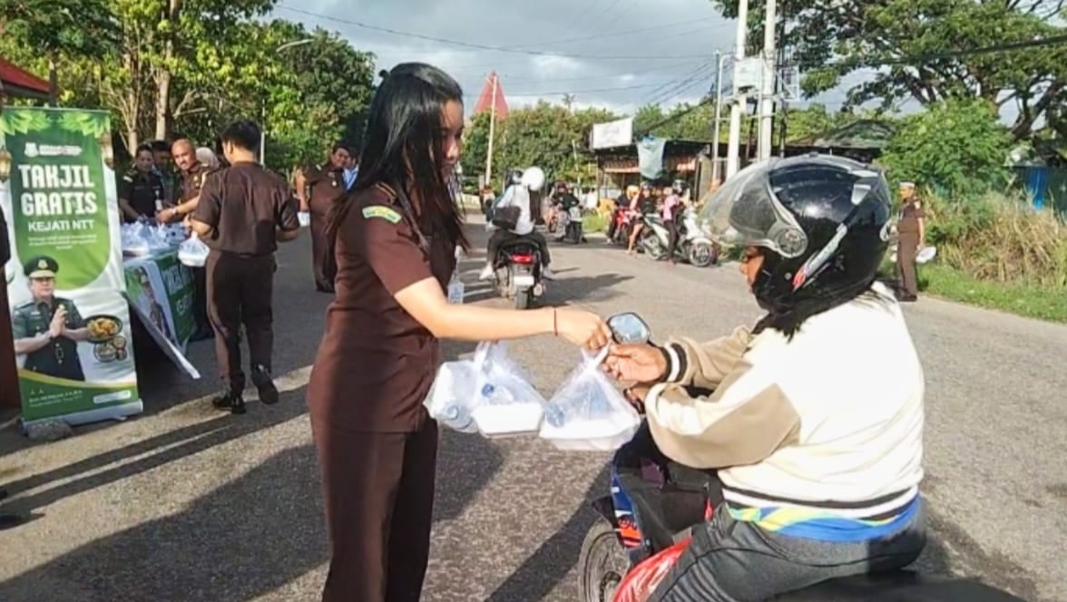 KUPANG,iNewsTTU.id-- Kejaksaan Tinggi Nusa Tenggara Timur (Kejati NTT) membagikan ratusan paket takjil gratis kepada masyarakat yang melintas di depan kantor Kejati NTT, Jalan Polisi Militer, Kota Kupang, Selasa sore.
